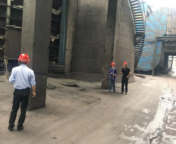 東方鍋爐集團有限公司、攀鋼釩煉鐵廠和藍(lán)鼎環(huán)保工作人員在2#燒結(jié)脫硫系統(tǒng)現(xiàn)場勘查確認(rèn)脫硝設(shè)備安放位置和現(xiàn)場場地尺寸