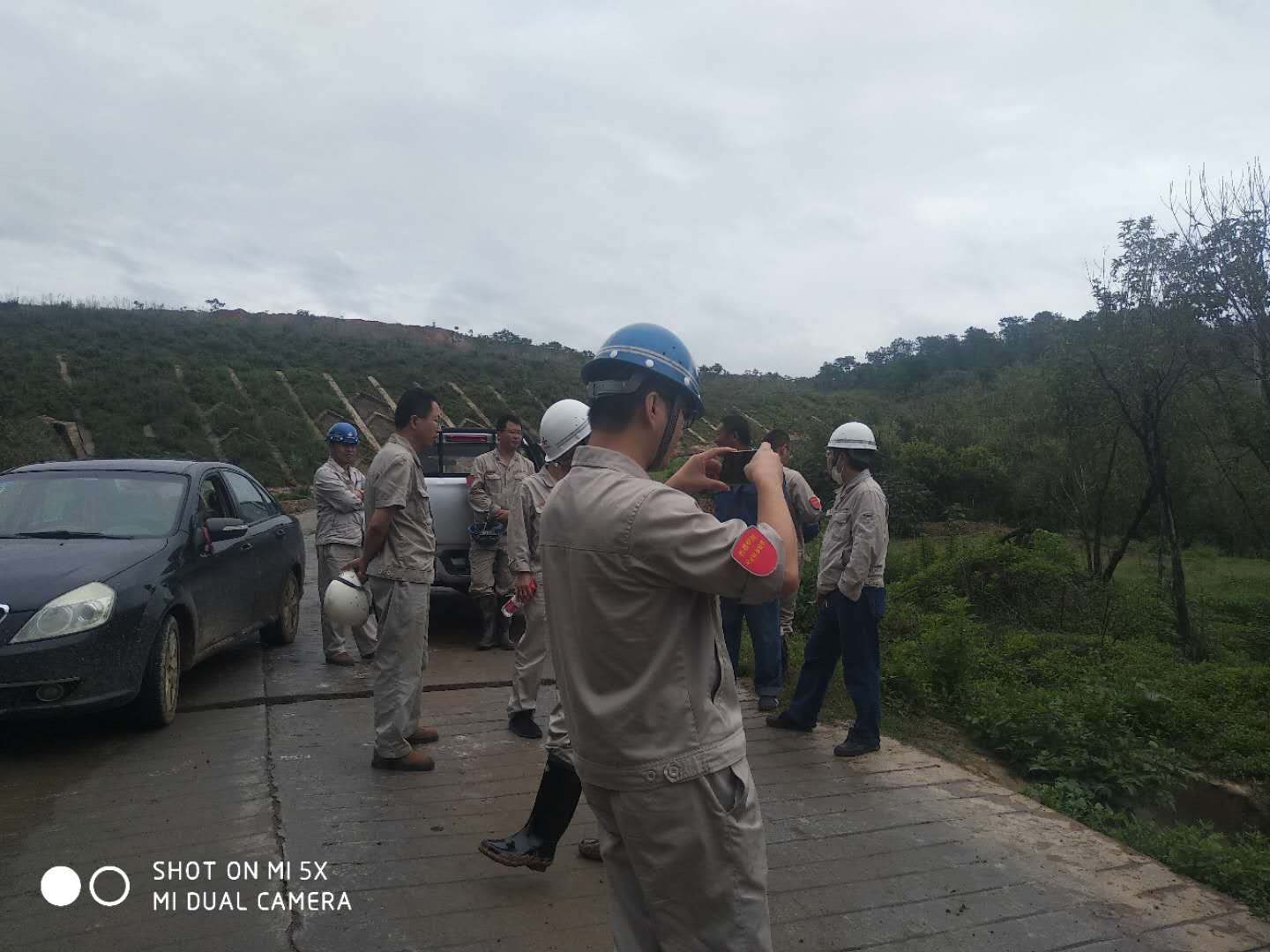 7月17日早7點,一場突如其來的暴雨襲擊了西昌,生產(chǎn)廠區(qū)未能幸免,檢修班長王成東迅速帶領住經(jīng)久公寓的員工開車來到廠區(qū),分組檢查各區(qū)域的防雨情況,電工斷開脫硫脫銷施工用電。脫硫廠區(qū)檢查無異常后,生產(chǎn)部部長孫小剛、副部長王建勇等又開車到零號溝脫硫灰堆場,檢查排水溝是否正常排水,邊坡是否滑塌,確保脫硫灰的正常運輸。