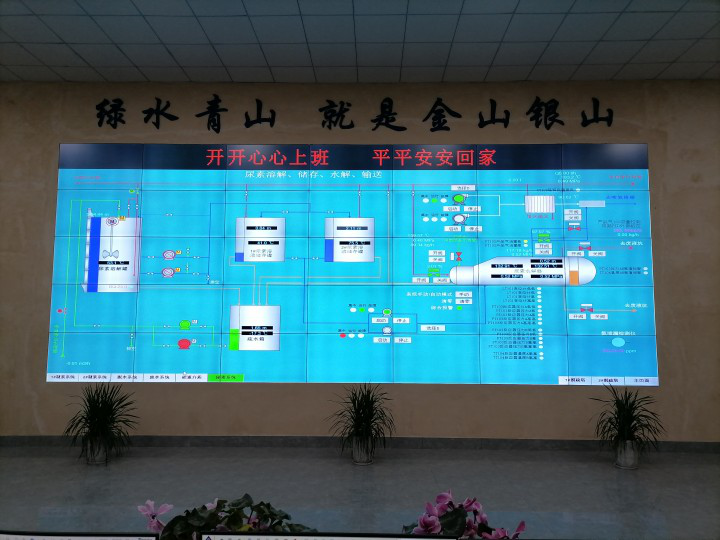 新中控室35臺55寸京東方顯示器拼接成超大顯示屏,生產(chǎn)運行情況盡收眼底。透明的玻璃推拉門,實現(xiàn)了天然采光的功能,寬敞明亮。樓道照明采用人體感應(yīng)控制,實現(xiàn)了自動開關(guān)燈。