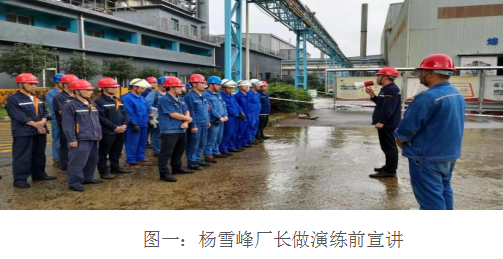 7月26日,應(yīng)急演練開始,興欣釩廠長楊雪峰協(xié)同調(diào)度科、運行車間、安全環(huán)?茀⒓,威遠藍鼎副總經(jīng)理黃安軍、生產(chǎn)副部長楊平、陳威、宋雨鵬、水處理生產(chǎn)檢修人員共計30人參加了本次演練。