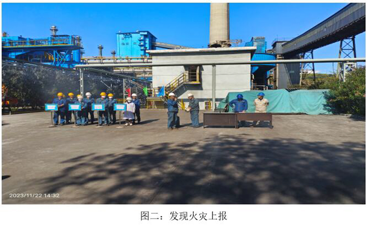 本次演練模擬2023年11月22日10:00分,焦化脫硫脫硝巡檢員發(fā)現(xiàn)焦化6號門因其他公司職工在外抽煙后,煙頭未熄滅直接丟入綠化帶,將綠化帶內(nèi)干雜草點燃,發(fā)生火災,后藍鼎公司現(xiàn)場巡檢員立即上報并按領(lǐng)導指示警戒、滅火、救治傷員、現(xiàn)場清理、結(jié)果匯報等措施消除火災。