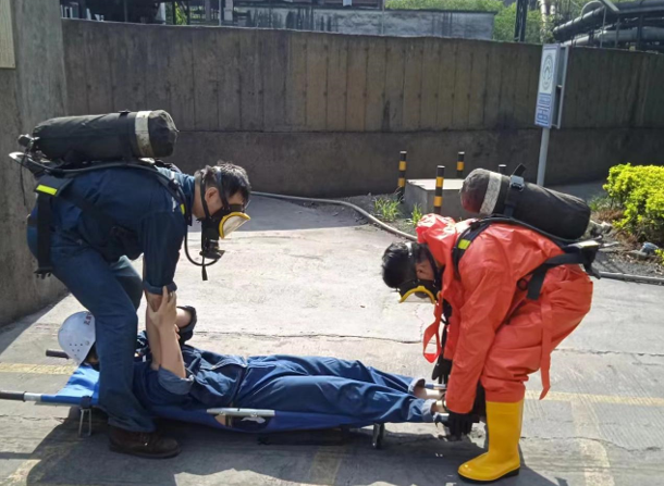 在演練過程中,應急隊伍成員各司其職,有序展開救援行動。救援人員迅速穿戴好防護裝備,進入事故區(qū)域?qū)χ卸締T工進行緊急救援,并將其送往醫(yī)院進一步治療。同時,檢修人員也迅速對泄漏點進行排查和修復,防止事故進一步擴大。
